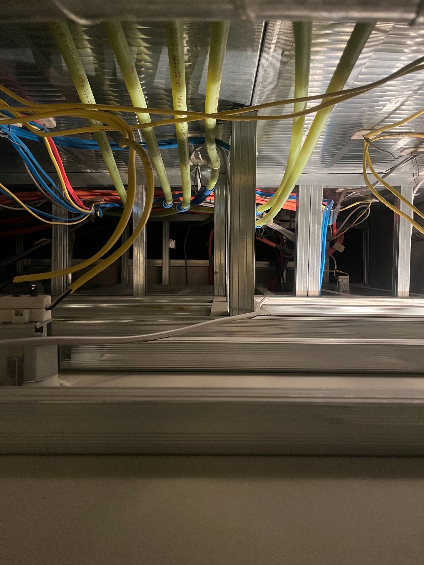 既存の照明回路などから分岐してしまうと、ブレーカーが落ちる原因になるため、新たに電源を引く工事を行います。